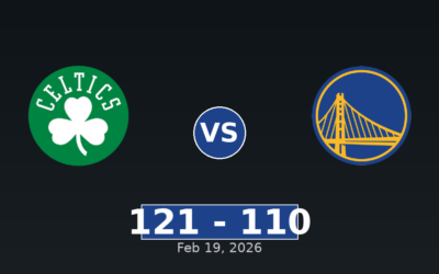 The Boston Celtics secured a 11-point victory against the Golden State Warriors on February 19, 2026, winning 121-110. The game took place at Chase Center with 18,064 in attendance. Game Information Quarter-by-Quarter Scoring Team Q1 Q2 Q3 Q4 Total GS 32 19 22 37 110 BOS 36 38 28 19 121 Officials Tony Brothers (Referee),…