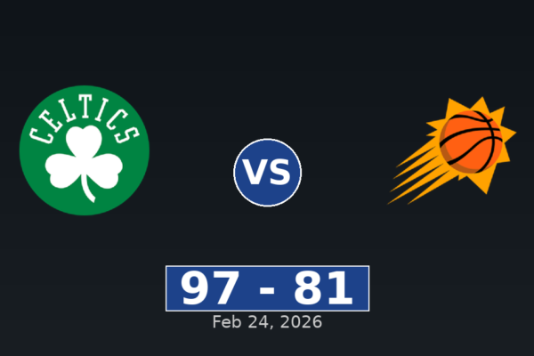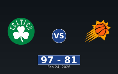 The Boston Celtics defeated the Phoenix Suns 97-81 on February 24, 2026 at Mortgage Matchup Center. A crowd of 17,071 witnessed the Boston Celtics secure the victory by 16 points. Game Information Quarter-by-Quarter Scoring Team Q1 Q2 Q3 Q4 Total PHX 26 20 11 24 81 BOS 21 29 30 17 97 Officials Derrick Collins…