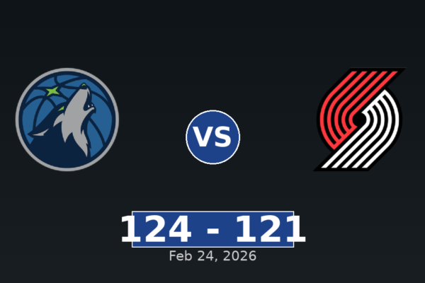 Playing at Moda Center on February 24, 2026, the Minnesota Timberwolves topped the Portland Trail Blazers 124-121. The Minnesota Timberwolves executed their game plan effectively before 17,581 fans. Game Information Quarter-by-Quarter Scoring Team Q1 Q2 Q3 Q4 Total POR 27 32 35 27 121 MIN 33 29 34 28 124 Officials Sean Wright (Referee), Michael…