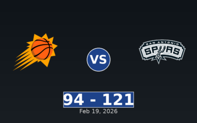 On February 19, 2026, the San Antonio Spurs earned a 121-94 win over the Phoenix Suns in front of 16,258 fans at Moody Center. The San Antonio Spurs controlled the game throughout the matchup. Game Information Quarter-by-Quarter Scoring Team Q1 Q2 Q3 Q4 Total SA 30 31 37 23 121 PHX 25 24 22 23…