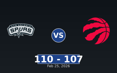 On February 25, 2026, the San Antonio Spurs earned a 110-107 win over the Toronto Raptors in front of 19,800 fans at Scotiabank Arena. The San Antonio Spurs controlled the game throughout the matchup. Game Information Quarter-by-Quarter Scoring Team Q1 Q2 Q3 Q4 Total TOR 29 30 31 17 107 SA 30 27 21 32…