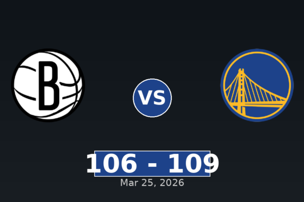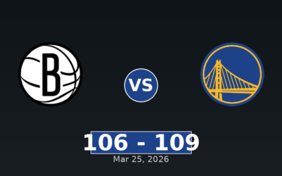 On March 25, 2026, the Golden State Warriors earned a 109-106 win over the Brooklyn Nets in front of 18,064 fans at Chase Center. The Golden State Warriors controlled the game throughout the matchup. Game Information Quarter-by-Quarter Scoring Team Q1 Q2 Q3 Q4 Total GS 25 25 27 32 109 BKN 30 28 28 20…