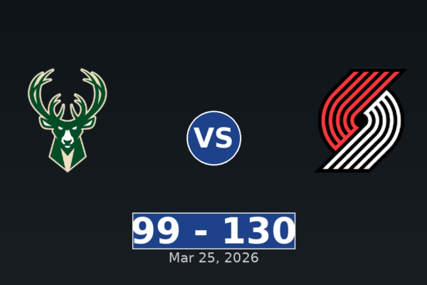 The Milwaukee Bucks fell to the Portland Trail Blazers 99-130 on March 25, 2026 at Moda Center. Despite the effort, the Milwaukee Bucks could not overcome the Portland Trail Blazers in front of 16,991 spectators. Game Information Quarter-by-Quarter Scoring Team Q1 Q2 Q3 Q4 Total POR 42 29 33 26 130 MIL 27 22 32…
