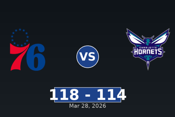 NBA NBA Philadelphia 76ers vs Charlotte Hornets Match Player Stats (Mar 28, 2026) March 11, 2025August 31, 2025